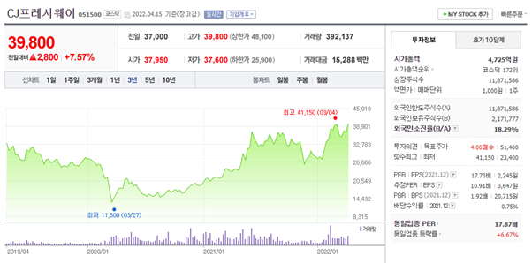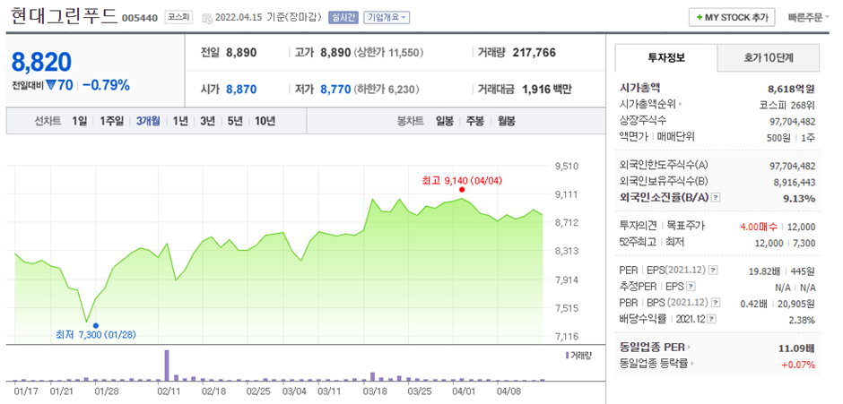 다양한 사업을 영위하는 만큼 주가가 비교적 안정적인 흐름을 보이고 있다. 급식 및 식품이 주 업종인 만큼 코로나 종식에 따른 매출 증가 효과를 톡톡히 누릴 수 있을 것으로 보인다.