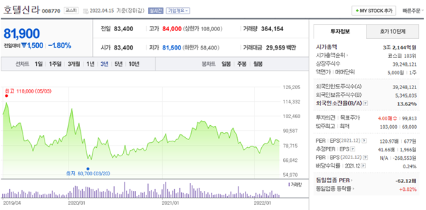 리오프닝 때마다 빠지지 않고 등장하는 호텔신라는 이번에야말로 리오프닝 수혜를 받을 수 있을지 지켜볼만하다.