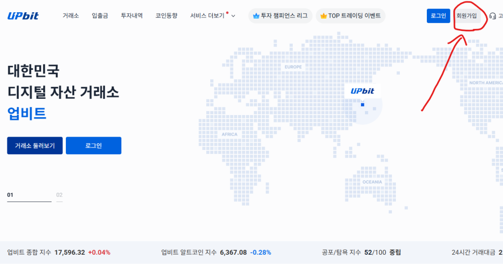 PC에서는 업비트 사이트로 가서 가입을 한다. 네이버에서 업비트를 검색하든가, 아래 링크로 이동하자.