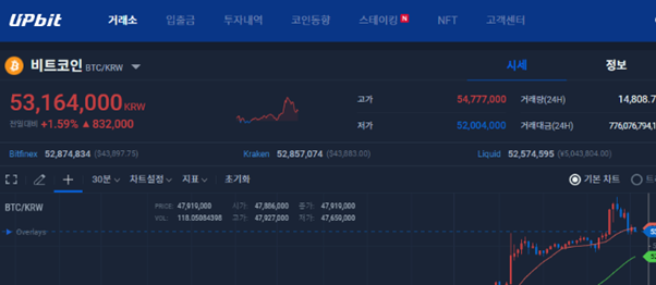 업비트에 KRW마켓은 매우 활성화 되어 있지만 BTC 마켓과 USDT 마켓은 거래량이 적어서 잘 사용되지 않는다.